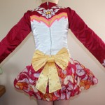 Immaculate stunning raspberry pink,white and gold dress. In eccellect condition no fake tan marks. Loads of Swarovski rainbow crystals. Fabulous stage presence. headband and pants included.