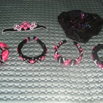 This Siopa Rince 3- panel dress is black sequins with shades of bright pink and white flowers with swarovski crystals, It has great stage presence and is a very cheerful dress. It is great dress for a novice or prizewinner dancer. The dress comes with 4 custom made headbands, a crown, and spankies.