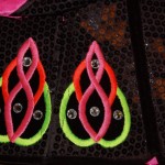 This stunning Carole Taylor black velvet dress is adorned with crystals throughout. A Egyptian style skirt is accented with sequins, crystals & embroidered with neon rainbow colors. Dress has had one owner & from a non-smoking home. Includes head band, cape & bloomers