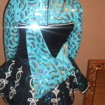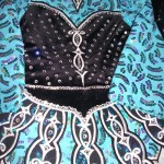 Dress is in immaculate condition & looks beautiful on the stage Very eye catching as it has hundreds of crystals with shimmering material in the sleeves & skirt for extra sparkle. Dress is stored safe & secure & we are first time owners.