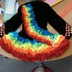 Rainbow ruffle with bold neon colors – dozens of swarovski crystals. Crown and Bloomers included.
