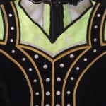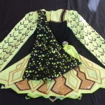 Gavin Doherty Irish Dance Dress for sale. Vibrant yellow, black velvet and gold. This dress is adorned with hundreds of Swarovski Crystals which adds to its elegance.