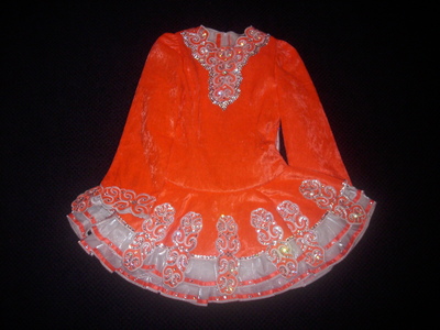 World Qualifying “Loretta Dress” Worn 6 times. Bright Orange soft skirt with white and ovver 2000 savorski crystals added.