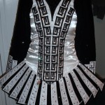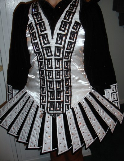 This exquisite almost new Gavin Doherty dress was worn only 4 times due to injury. Made in April 2010 for Worlds. Dress is now sadly out grown. Hundreds of Hematite and Crystal AB Swarovski Crystals adorn this immaculate, as new condition dress. The underskirt is black satin and the bloomers and headband are included in the sale. Stored in a smoke free home. This dress is beautiful on stage. Ready for immediate shipping, this dress would be perfect for Oireachtas! Original price with crystals was $US2,400.