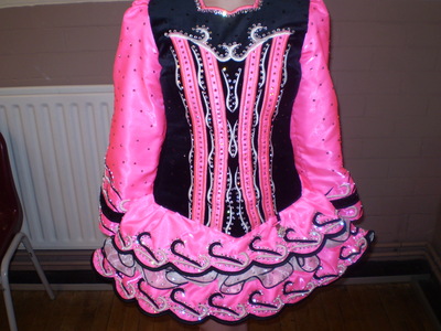 Stunning Shauna Shiels dress in hot pink fabric. Stunning stage presentation with hundreds of swarvoski crystals complete with head band and knickers.