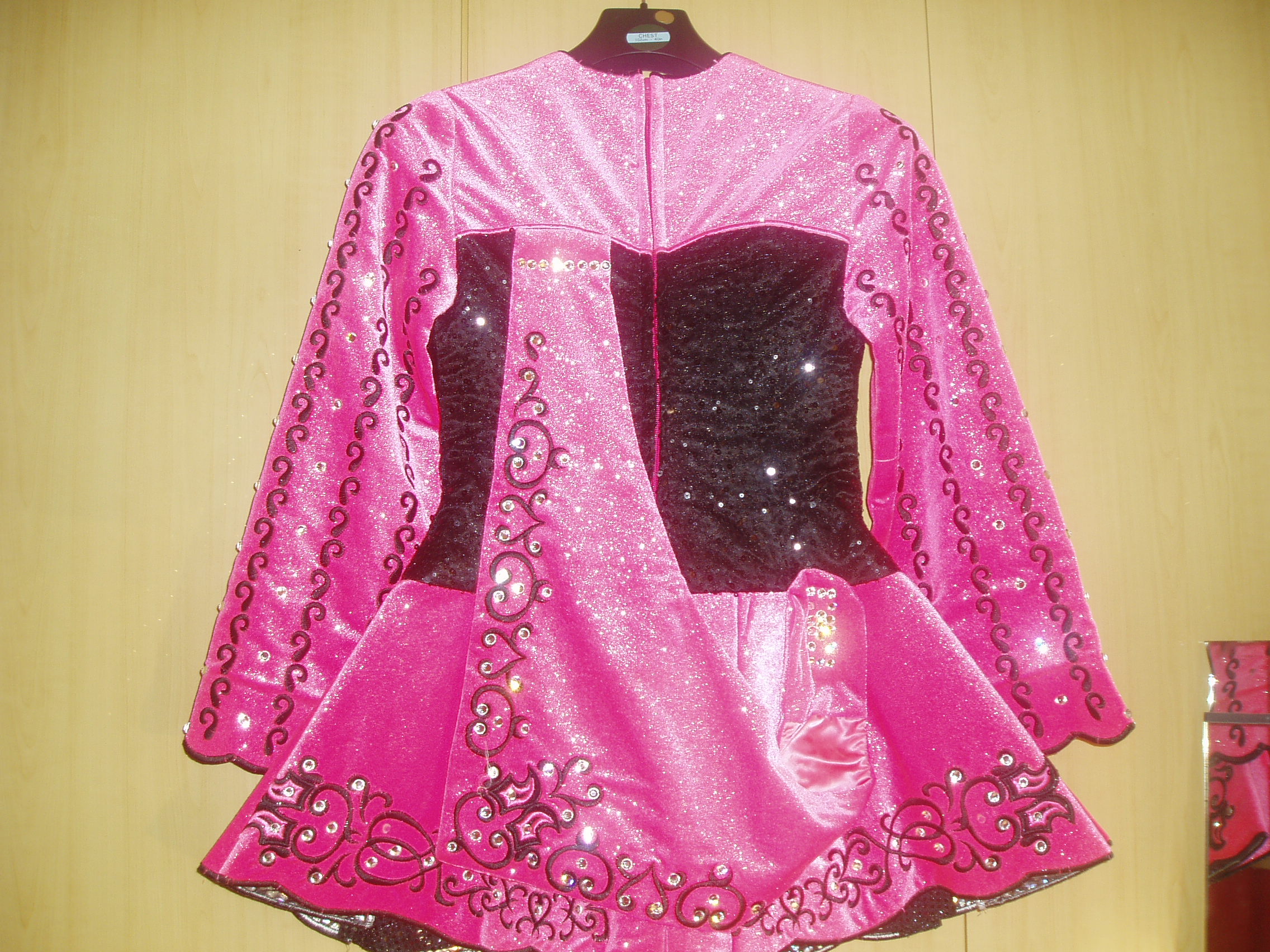 Gorgeous pink and black Siopa Rince dress, silver and black pattern underneath. Lots of sparkle with swarozski crystals, dress in excellent condition, comes with kickpants and flower headband.