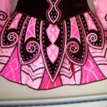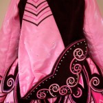 We are the second owner of this unique Elevation Designs dress made in 2009. The pink is bright and super shimmery and the brown is dark chocolate.