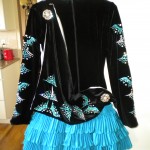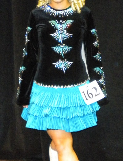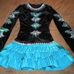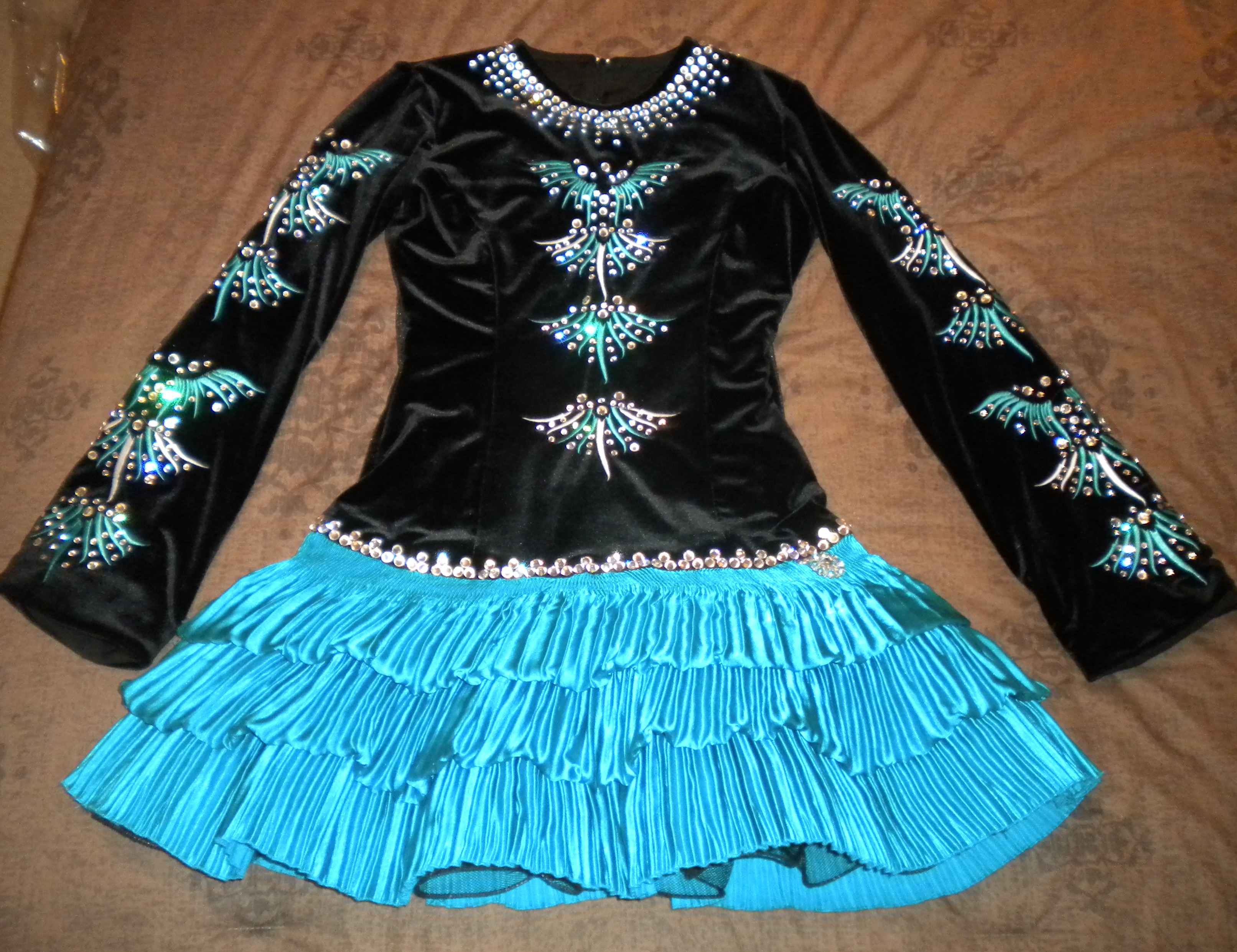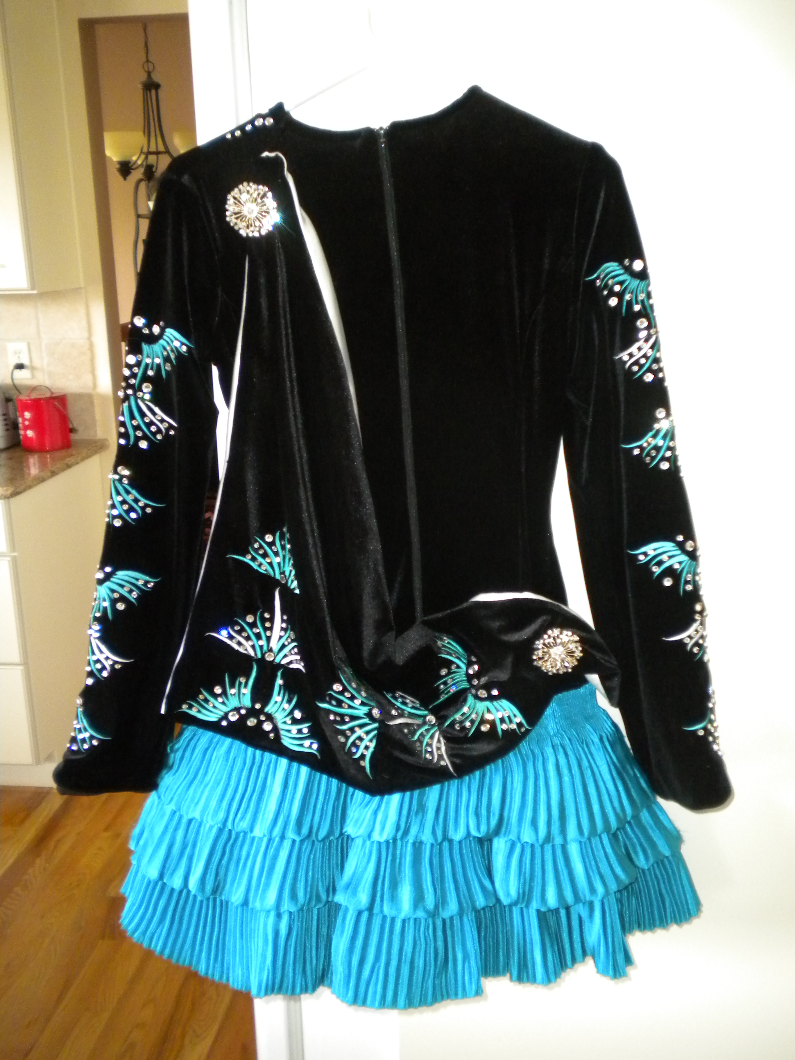 Black and Turquoise solo dress made by Emerald Key in 2010. This dress is 10 months old and in great condition. The bodice is made of a light weight stretch