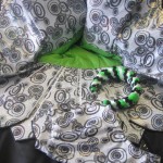 Dress comes with matching black and white swirl shorts (matches the lining) and a crystal encrusted hair band. It is in very good condition and has been well looked after. There is a great deal of attention to detail and extremely well made.