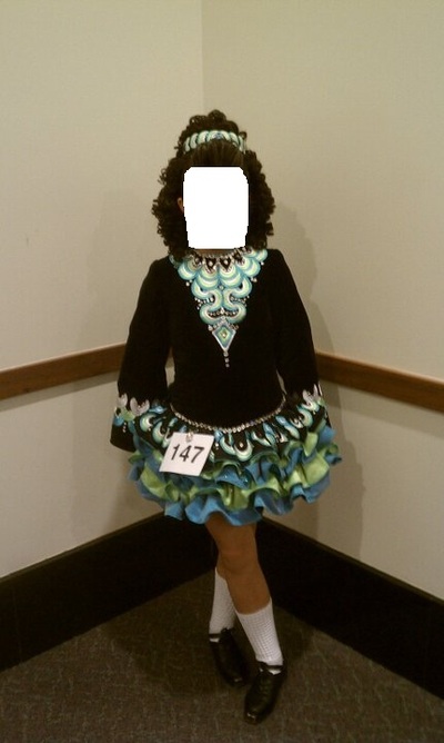 Selling due to growth spurt. The dress is in excellent conditon and looks great on stage. It was worn by a championship dancer and is less than one year old. The dress includes bloomers and 2 headbands. Please email for additional pictures.
