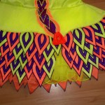 Stunning vibrant yellow, orange and purple dress, complete with knickers and matching headband. The dress is less than 12 months old and has only been work 3 times. It is in perfect condition.