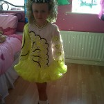 Dress only made 3.5 months ago it comes with a black and yellow headband that is covered in crystals. There is also white bloomers that comes with the dress. This dress is in first class condition and has only been worn to a few feises but it is stunning on stage. It has over 200 swarovski ab stones on it.
