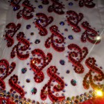 Dress is in great condition. Worn only 5 times. Has over 10 gross of Swarovski Rhinestones on the dress. Looks amazing on stage. Comes with red Swarovski headband. Pictures do not do the dress justice!!
